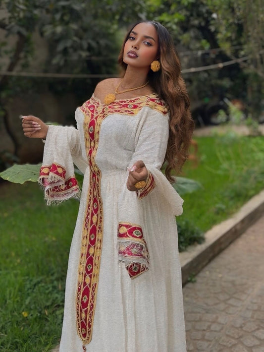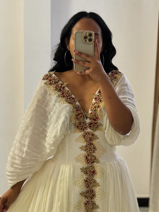 Welcome to The Ethiopian Store — your trusted destination for elegant, handcrafted Habesha kemis & Habesha dress for weddings, holidays, and special occasions. Our collection celebrates the beauty of Ethiopian & Eritrean tradition with traditional & modern touches, offering authentic Habesha Kemis made from handwoven fabrics, intricate tibeb patterns, and timeless designs. Whether you're preparing for an Ethiopian wedding, Eritrean Wedding, Baptism, Meskel, Timket, Ethiopian New Year, a graduation or any cultural celebration, our dresses are designed to honor heritage while embracing style. Each piece is ethically made by skilled artisans in Ethiopia, connecting you to the rich culture and craftsmanship of our homeland. Shop now and experience the pride, grace, and tradition of Ethiopia—only at The Ethiopian Store.