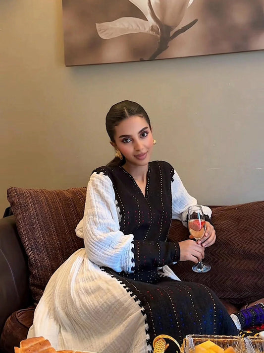 Black Embroidery Habesha Dress Graceful Long Sleeve Ethiopian Traditional Dress Timeless Habesha Kemis 711
