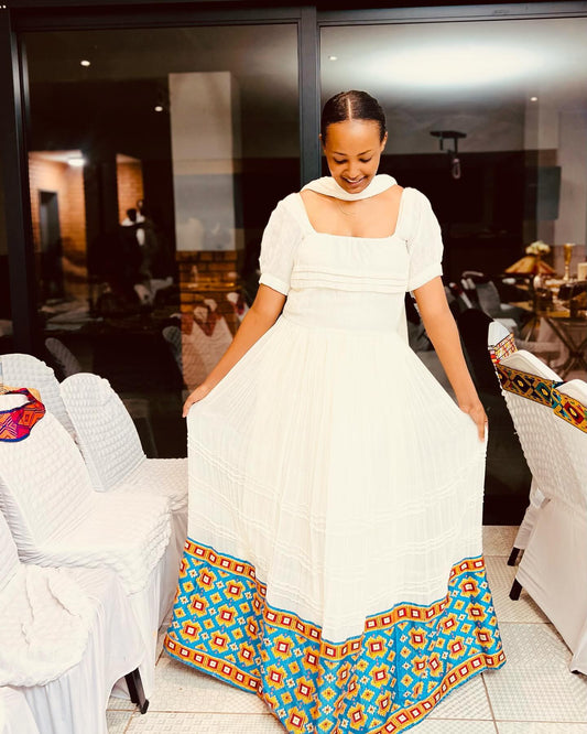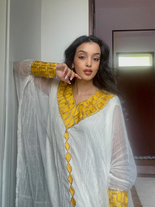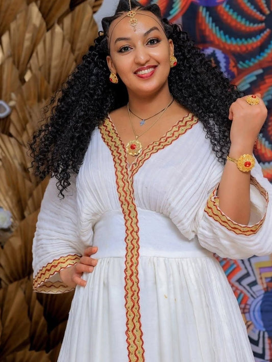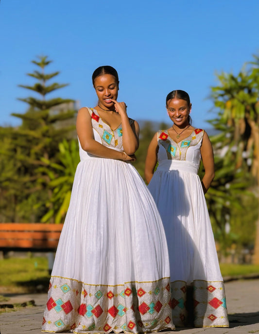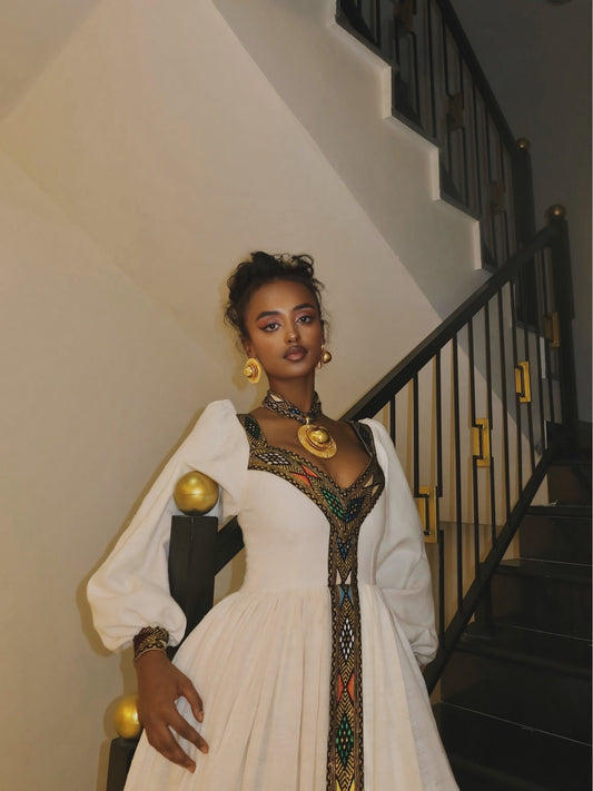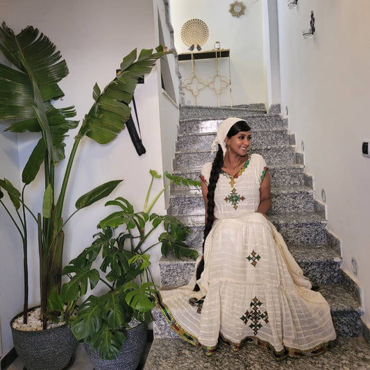 Welcome to The Ethiopian Store — your trusted destination for elegant, handcrafted Habesha kemis & Habesha dress for weddings, holidays, and special occasions. Our collection celebrates the beauty of Ethiopian & Eritrean tradition with traditional & modern touches, offering authentic Habesha Kemis made from handwoven fabrics, intricate tibeb patterns, and timeless designs. Whether you're preparing for an Ethiopian wedding, Eritrean Wedding, Baptism, Meskel, Timket, Ethiopian New Year, a graduation or any cultural celebration, our dresses are designed to honor heritage while embracing style. Each piece is ethically made by skilled artisans in Ethiopia, connecting you to the rich culture and craftsmanship of our homeland. Shop now and experience the pride, grace, and tradition of Ethiopia—only at The Ethiopian Store.