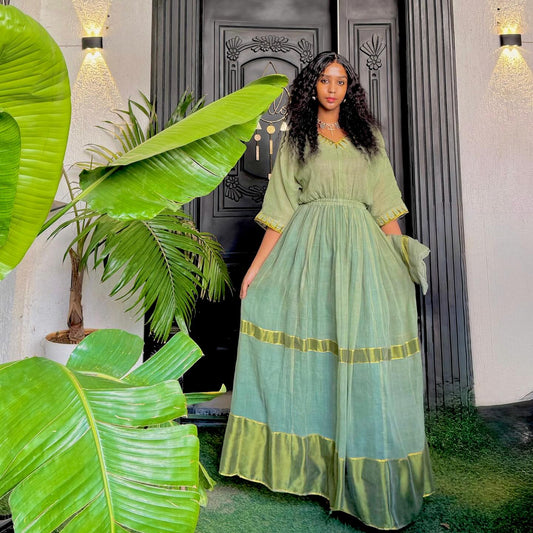 Green Habesha Dress Traditional Ethiopian and Eritrean Clothing Stylish Habesha Kemis 569