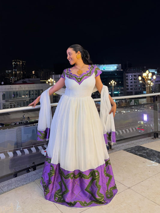 Gorgeous Tilf Habesha Kemis with Shimena Dress and Regal Menen Fabric, Habesha Kemis, Eritrean dress, ሀበሻ