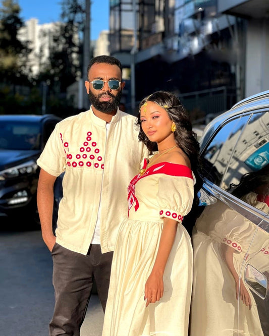 Matching Habesha Kemis for Couples Elegant Habesha Dress & Men’s Shirt Traditional Ethiopian Clothing Sets 475