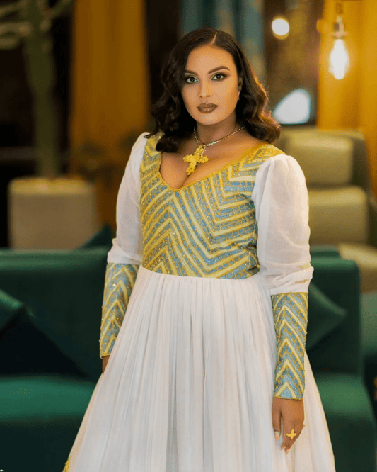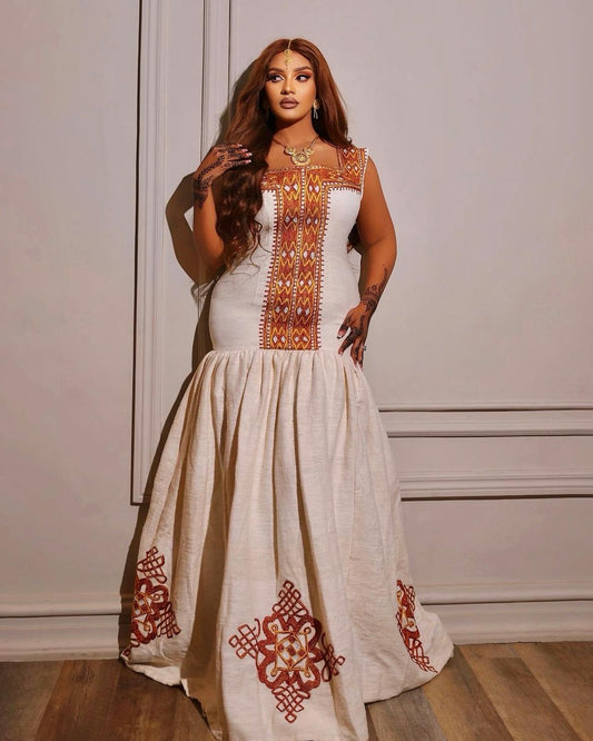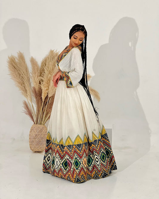 Charming Colorful Cultural Ethiopian Dress: Handcrafted Patterns on Traditional Dress Tailored for Every Events Habesha Kemis