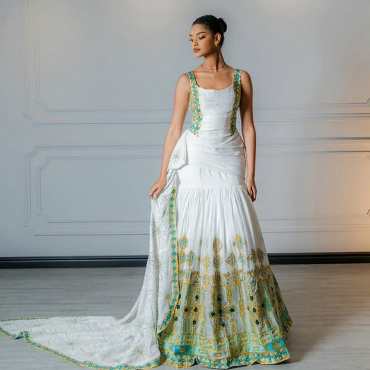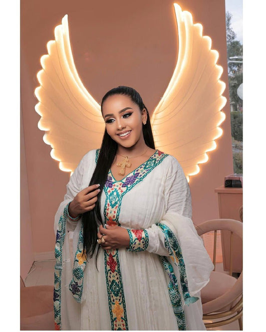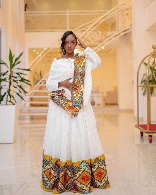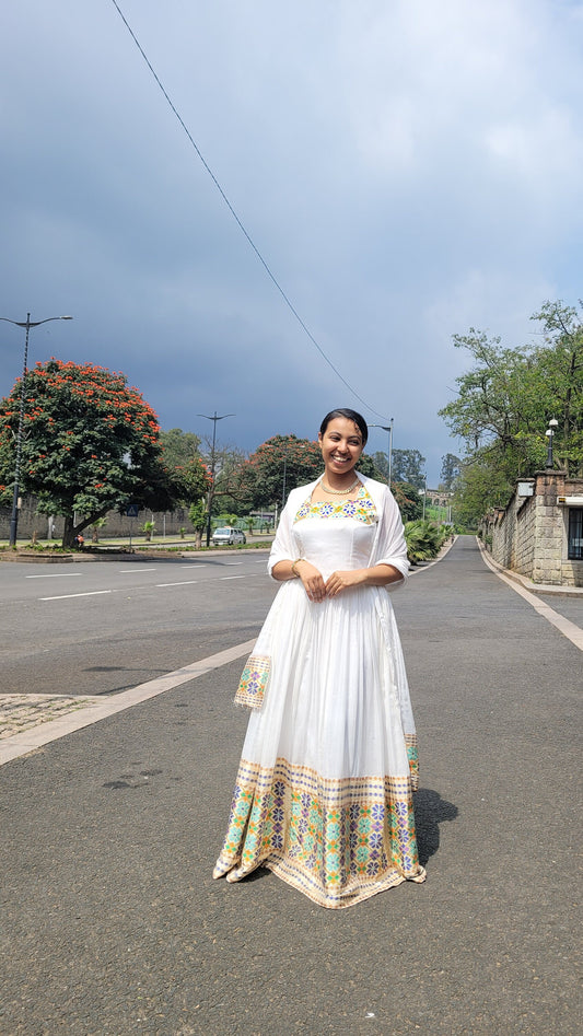 Elegant Habesha Dress with Colorful Embroidery – Ethiopian Traditional Clothing – Habesha Kemis