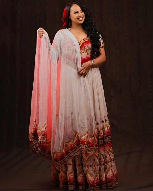 Elegant Habesha Dress Red-Infused Habesha Kemis Ethiopian Dress Style