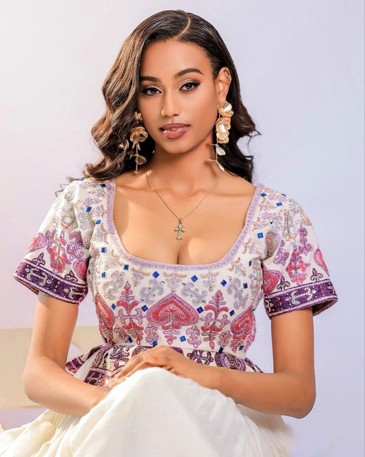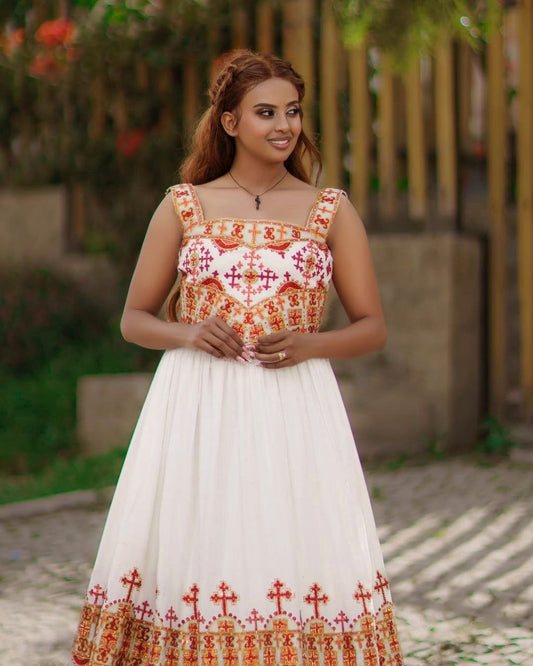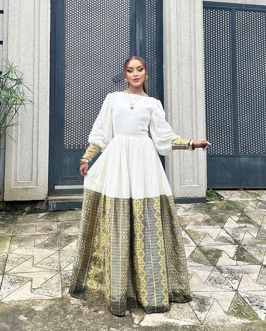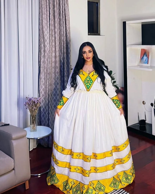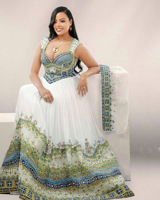 Elegant Habesha Kemis with Intricate Ethiopian Embroidery