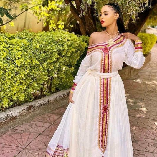 Elegant Habesha Dress with Wider Tilet Traditional Habesha Kemis Ethiopian Traditional Dress