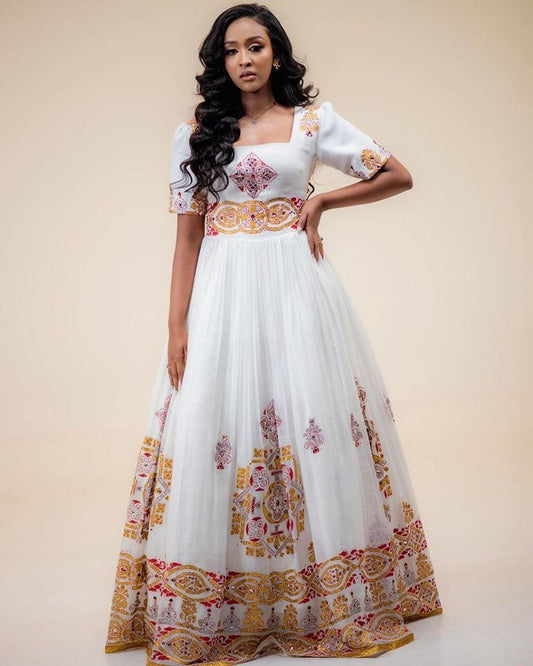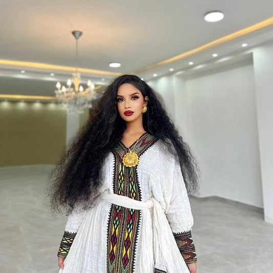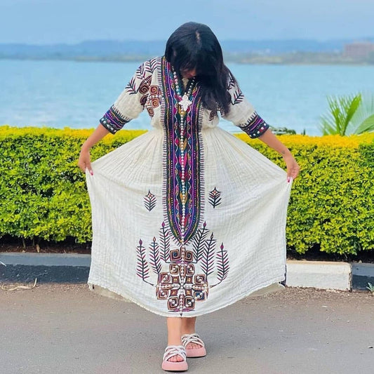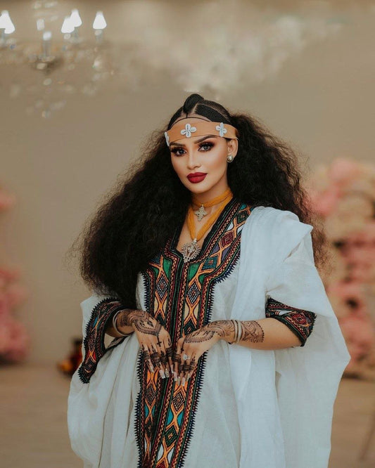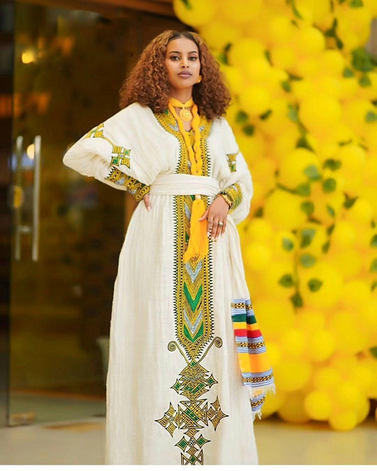 Beautiful Ethiopian Dress with Colorful Tibeb Details For Cultural Celebration