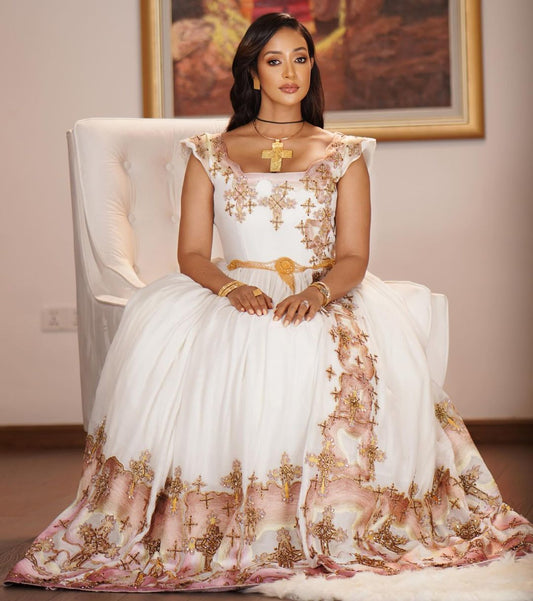 Beaded Modern Ethiopian Dress Light Hues Habesha Wedding Dress