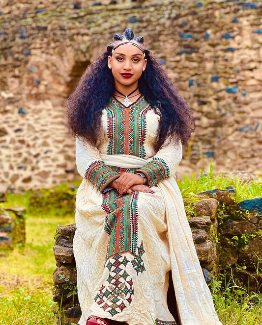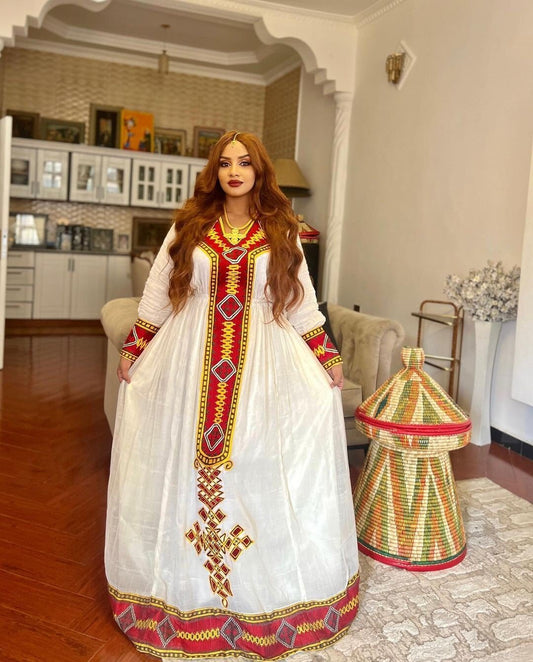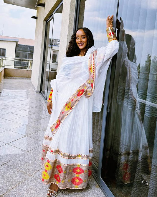 Beautiful Bold and Bright Traditional Habesha Dress With Cultural Elegance
