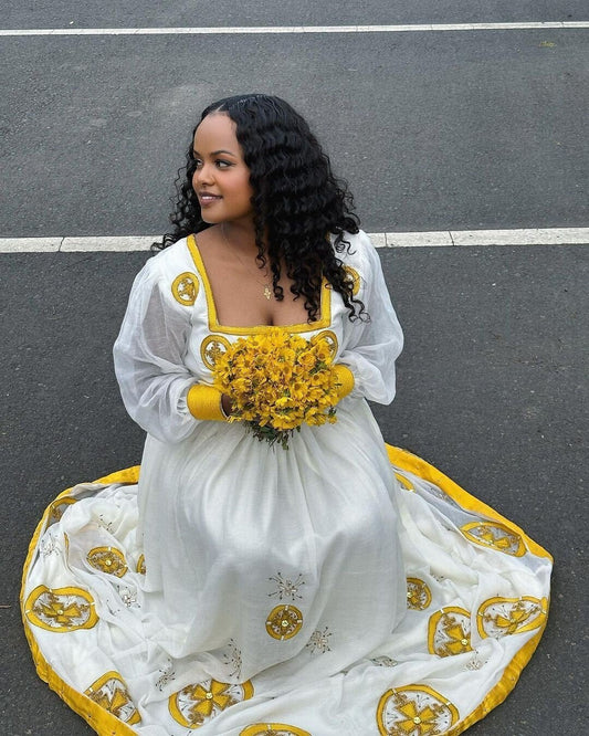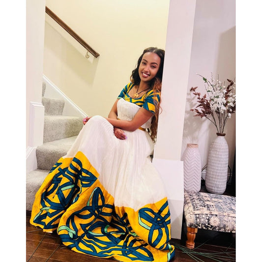 Modern habesha dress Yellow design Ethiopian dress for new year's