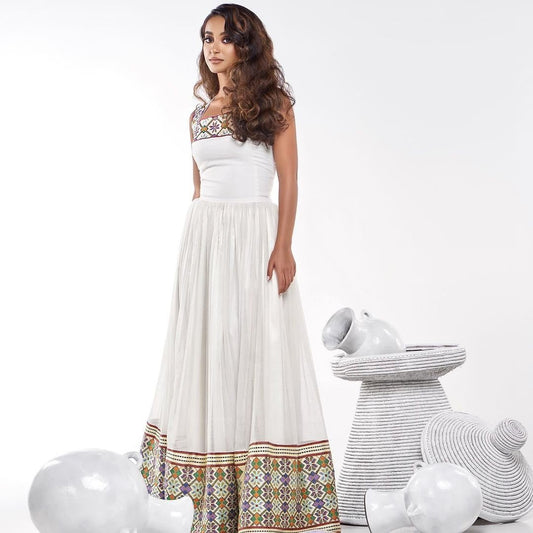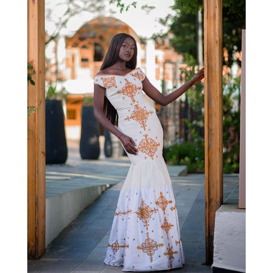 Modern Habesha Dress Ethiopian & Eritrean Style Habesha Kemis Ethiopian Clothing With Corset Inspired Bodice 146
