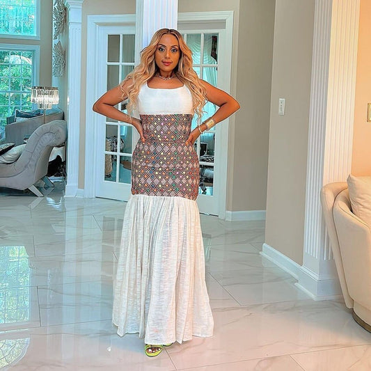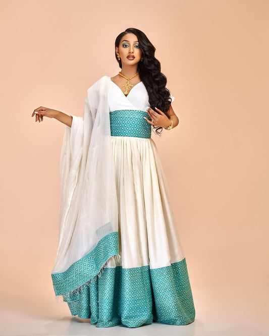 Modern Menen Habesha Kemis with a Gorgeous Tilf Pattern and Shimena Dress, Habesha Kemis, Eritrean dress, ሀበሻ