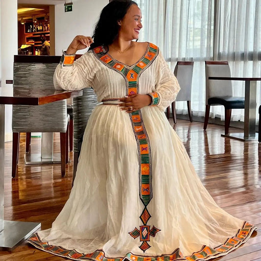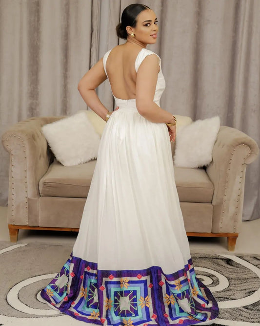 Ravishing Backless Habesha Dress: with Wide Hand-Embroidered Hemline Ethiopian Dress Chic Habesha Kemis