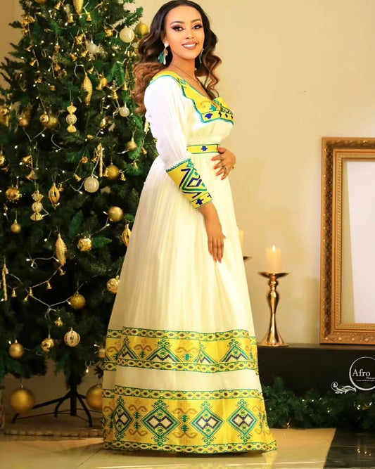 Radiant Yellow Habesha Coffee Dress Free-Size Ethiopian Coffee Dress