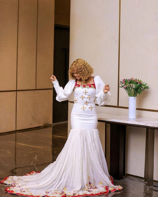 Radiant Splendor: Exquisite Modern Habesha Wedding Dress Ethiopian dress
