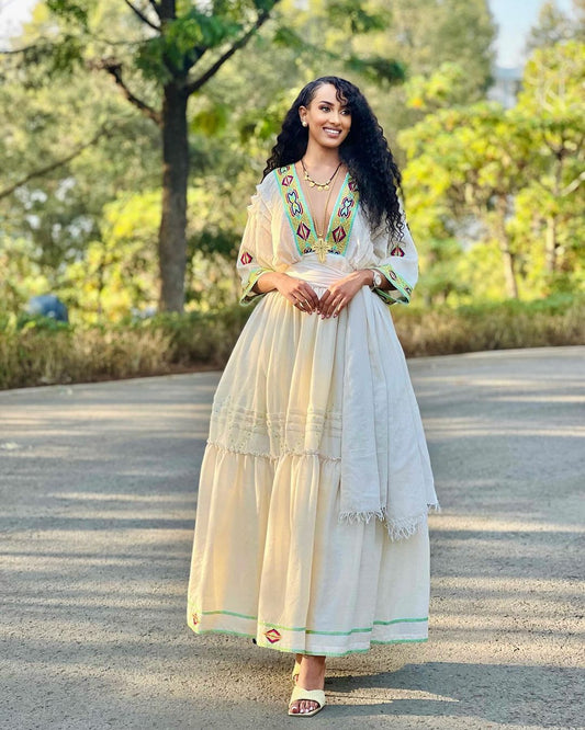Radiant Splendor Habesha dress Modern Habesha kemis with Wide Tilet