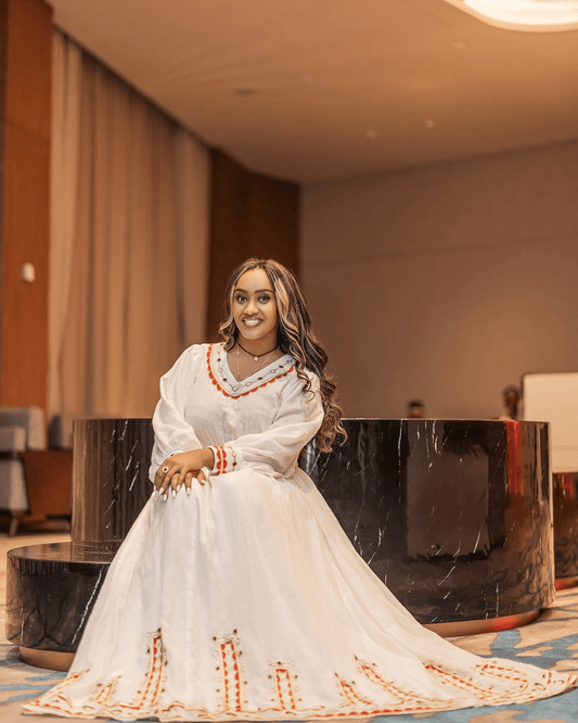 Red Beaded Exquisite Habesha Dress Modern Habesha Kemis Traditional Ethiopian dress Style