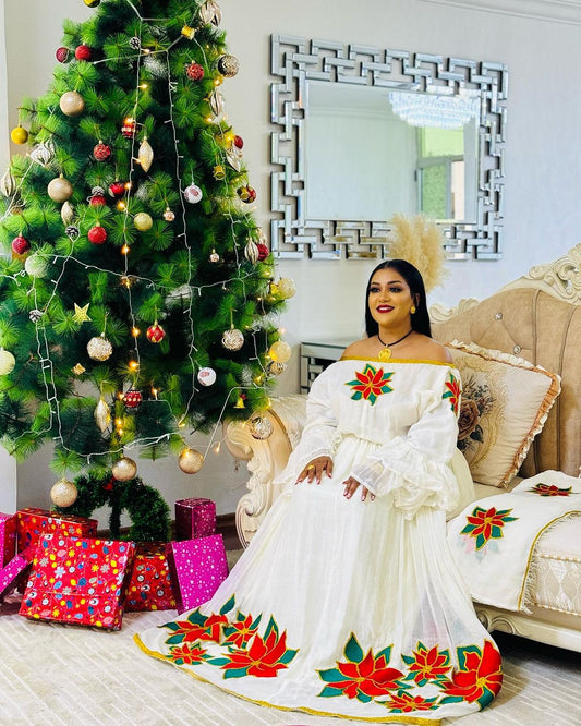 Red Flower Design Habesha Dress Habesha Kemis Ethiopian Dress Style Traditional Habesha Libs