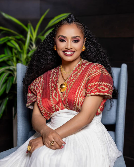 Red Habesha Kemis Elegant Classic Design Handcrafted Accents