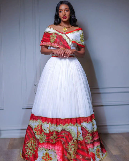 Red Pattern Stylish Habesha Dress Modern Habesha Kemis Traditional Ethiopian dress Style