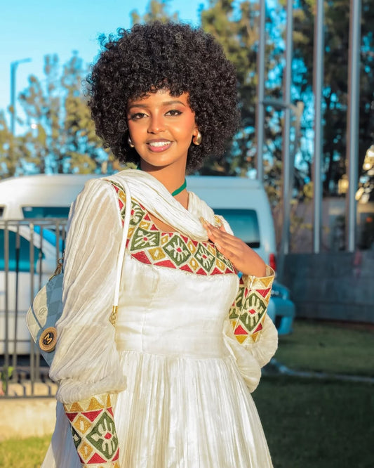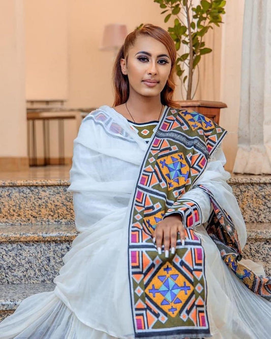 Redefined Beauty on Colorful Habesha Dress: Cultural Handmade Embroidery Traditional Ethiopian Dress Modest Habesha Cloth