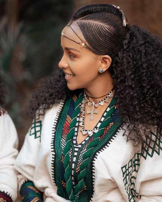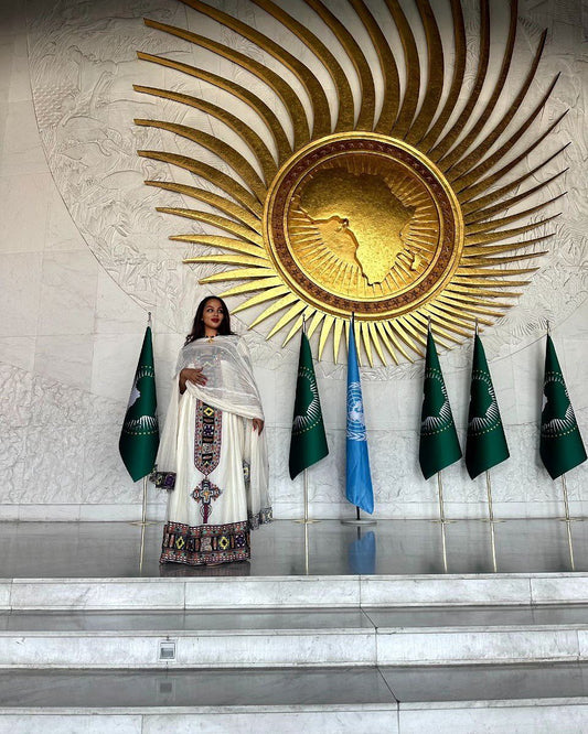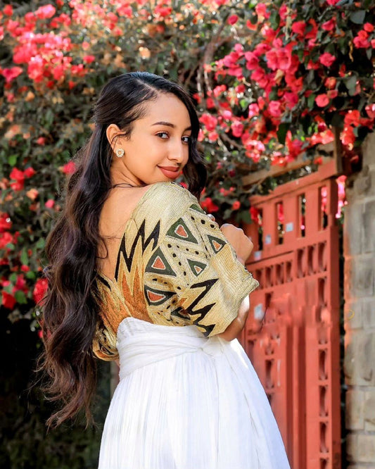 Regal Habesha Kemis with Menen Fabric, Shimena Dress, and Detailed Tilf Pattern Design, Habesha dress, Eritrean dress, ሀበሻ