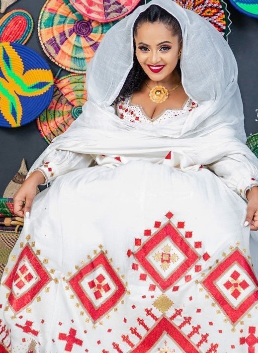 Red Menen Majesty: A Stunning Traditional Ethiopian Dress, habesha dress, Habesha kemis, Eritrean dress, ሀበሻ