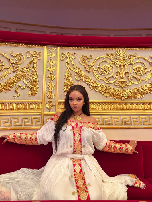 Regal Ethiopian Couple's Outfits with Gold Embroidery – Traditional Bridal Wear