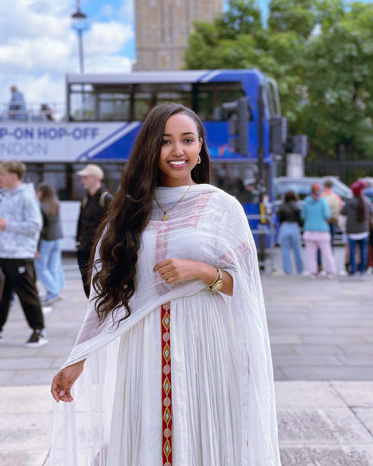 Regal Menen: A Fully Handwoven and Elegant Habesha Dress in Luxurious Menen Fabric, Habesha Kemis, Eritrean dress, ሀበሻ