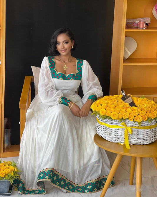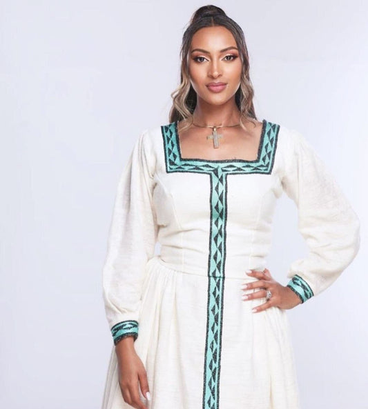 Simple & Elegant Habesha Dress, Ethiopian Tradition, Kemis, Menen Embroidery