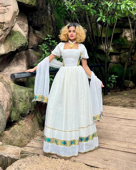 Simple Habesha Kemis with Gold Embroidery for Occasions - Habesha Clothing - Ethiopian Clothing
