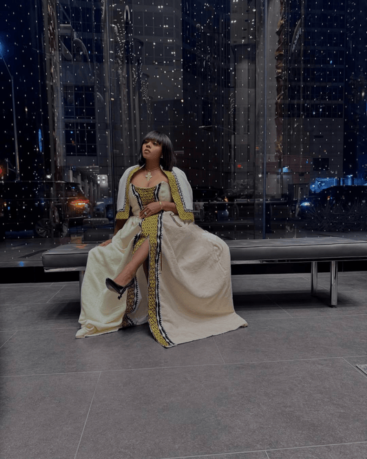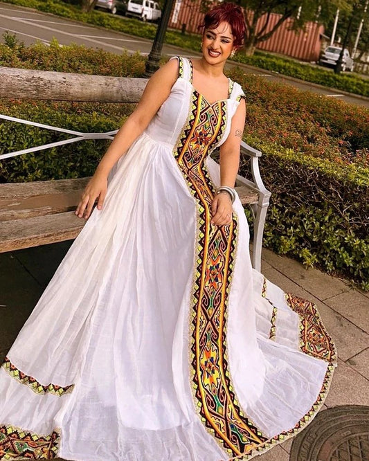 Sleeveless Habesha Dress Gold-Embroidered Ethiopian Traditional Clothing Graceful Habesha Dress 124