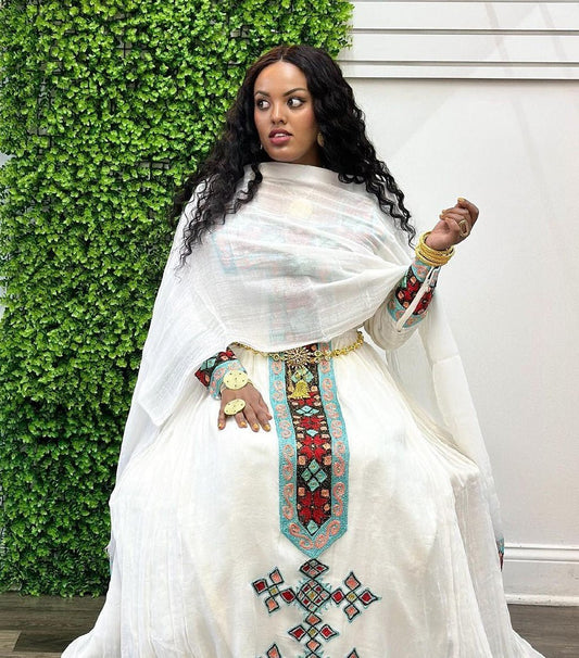 Simple Yet Fine Looking Habesha Dress: with Cross and Diamond Shape Embroidery Traditional Ethiopian Dress Elegant Eritrean Clothing