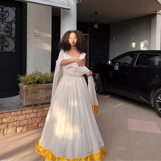 Simple Yet Elegant Yellow Habesha Kemis Timeless Style