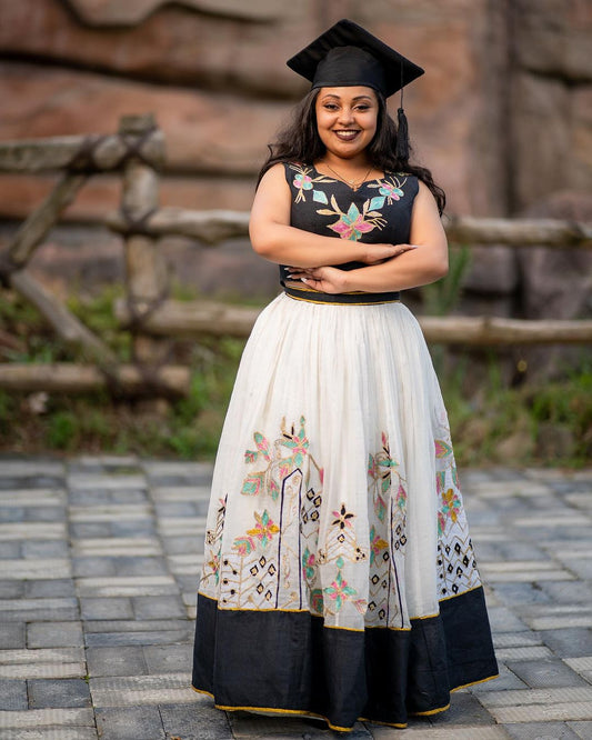 Sleeveless Habesha Dress with Admirable Traditional Embroidery: Ethiopian Dress for Cultural Celebrations