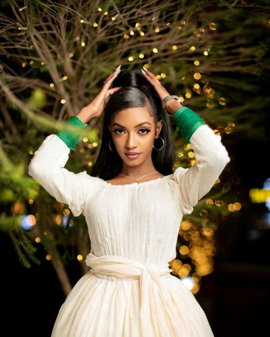 Simplicity Refined Handwoven Menen Fabric Cultural Dress Habesha Kemis Habesha Libs es0069