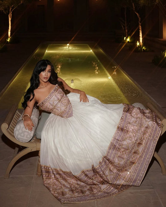 Simple White Habesha Dress Corset Design Ethiopian Traditional Wear