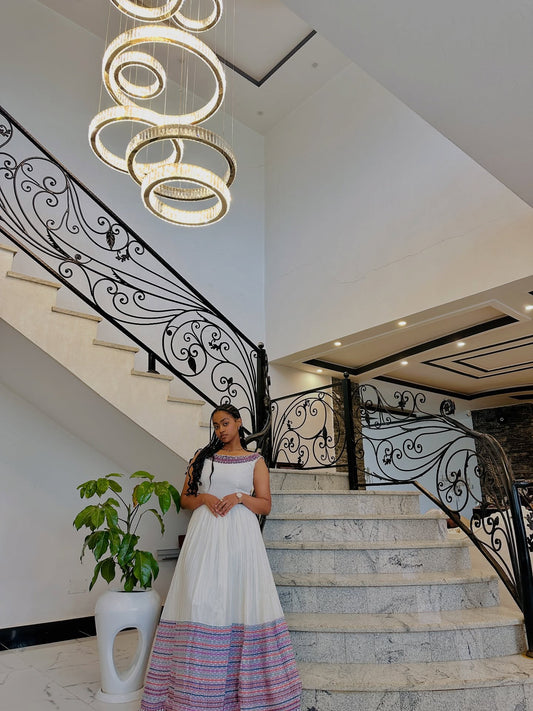 Simple Yet Stunning Multicolored Habesha Dress: Elegant Ethiopian Traditional Wear for Special Occasions