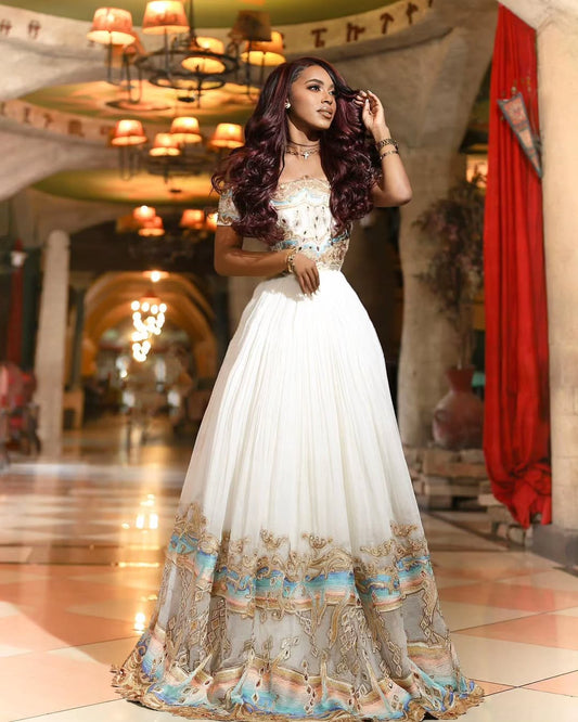 Stylish Multi-color Pattern Habesha Dress Modern Ethiopian Kemis