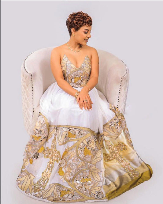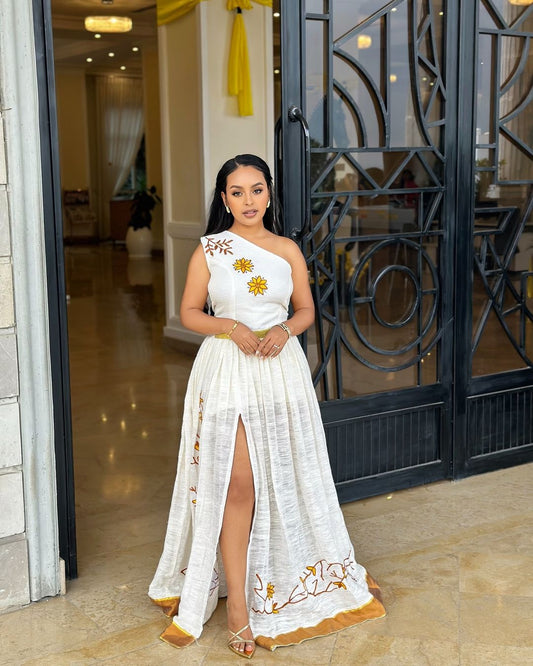 Stylish Golden Mermaid Habesha Dress: Breathtaking Handcrafted Embroidery Eritrean Dress for Special Occasions Traditional Ethiopian Dress