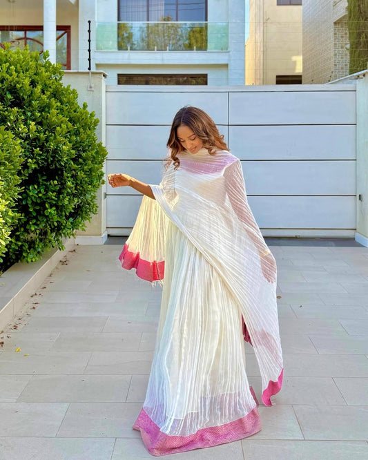 Vibrant White Habesha Kemis with Pink Trim – Ethiopian Dress