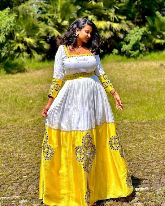 Timeless beauty yellow Habesha Dress Habesha Kemis Habesha Libs es0075
