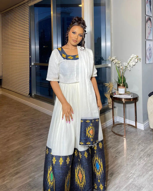 Timeless Beauty: Simple Habesha Dress with Beautiful Menen Fabric and Cotton Patterns
