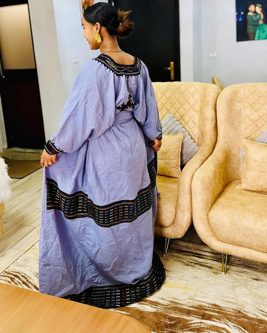 Timeless Beauty in Dark Hues: Gorgeous Handwoven Habesha Dress with Menen Fabric