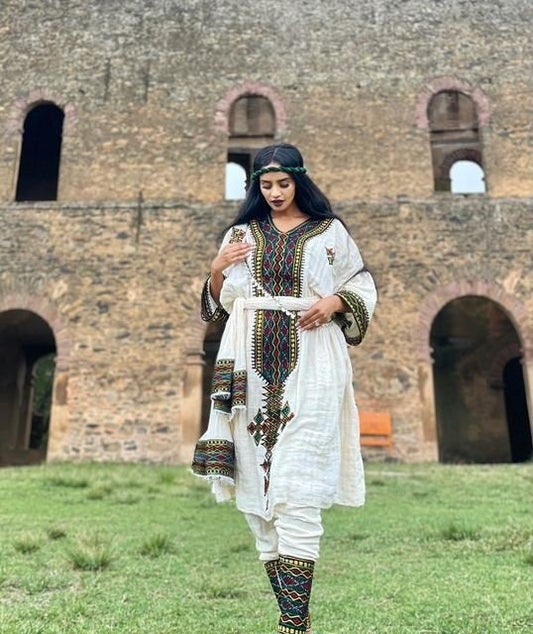 Traditional Ethiopian Clothing Radiant Habesha Dress Multicolor Long-Sleeve Habesha Kemis 280