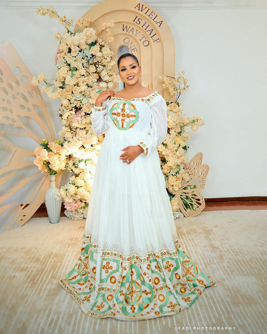 Traditional Ethiopian Dress Off-Shoulder Habesha Dress Style Simple Design Habesha Kemis 259