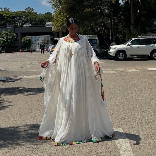 Beautiful Vintage White Habesha Dress: with Thin Handmade Embroidery Traditional Ethiopian Dress Flowy Cultural Dress Ethiopian Clothing
