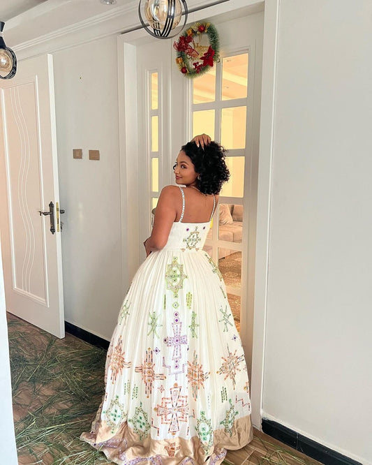 White Habesha Dress Festive Habesha Kemis Timeless Beauty in Traditional Ethiopian Clothing 187