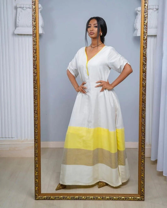 Radiant Yellow Habesha Coffee Dress Free-Size Ethiopian Coffee Dress